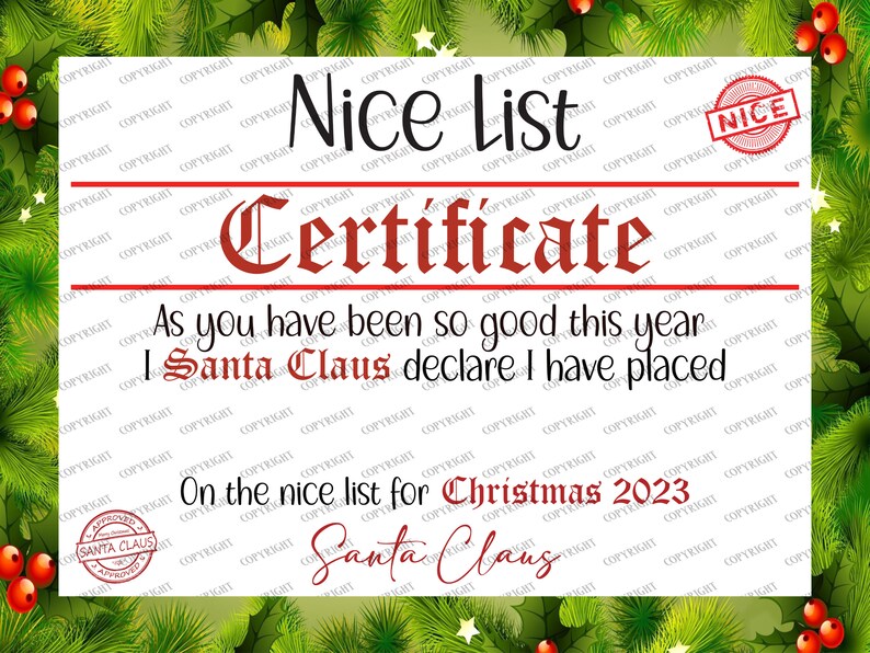 3 Adorably Cute Santa Nice List Certificates Cassie Smallwood. The Santa Claus Nice List (The Good List 2025) Check out the very latest Nice List reports from Sherlock Elf and the scout elves at the Noddy N' Nice Elf Detective Agency! (Check out Santa's Naughty List here or send your own Nice Report about someone) Alyssa W., 21 - Canada Nice Report: Award-winning Santa Claus site for parents and kids